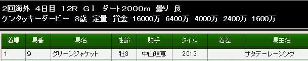 グリーンジャケット号2連勝おめでとう!(*´∀`)o∠☆゚+。*゚PAN!!★゚+。*゚