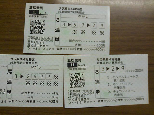 いつものように、予想屋のおっちゃん(大黒社)の1日予想買って、毎レース、おっちゃんとパドックでの状態やら展開やらを相談して、買い目を決めてたんですが、珍しくおっちゃんの予想がかなり当たっていてびっくりスンゲェ──―Σ(゚∀゚ノ)ノ─―─ッ!