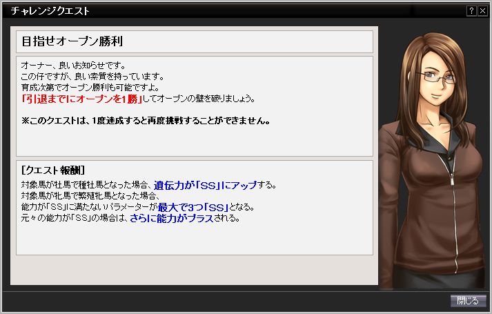 例の「本格競馬育成ゲーム」らしからぬクエストです。
