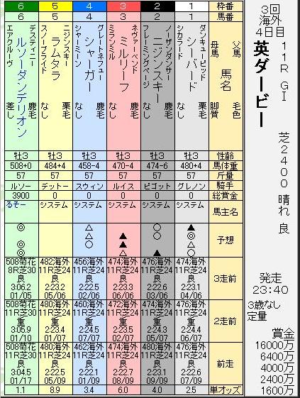 そして、今日の英ダービーに、