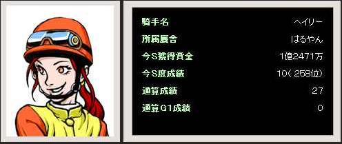 シャーガーカップのリーダーにも選ばれたり、かなりの凄腕騎手である事は伝わりますが、実際にレース映像とかは見た事がありません^^;