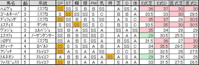 今期引退した3歳勢が爆発して、一気に厩舎レベルが上がったのですが、困った事に同じ父が多く、血統的な欠陥を抱えてしまっています^^;